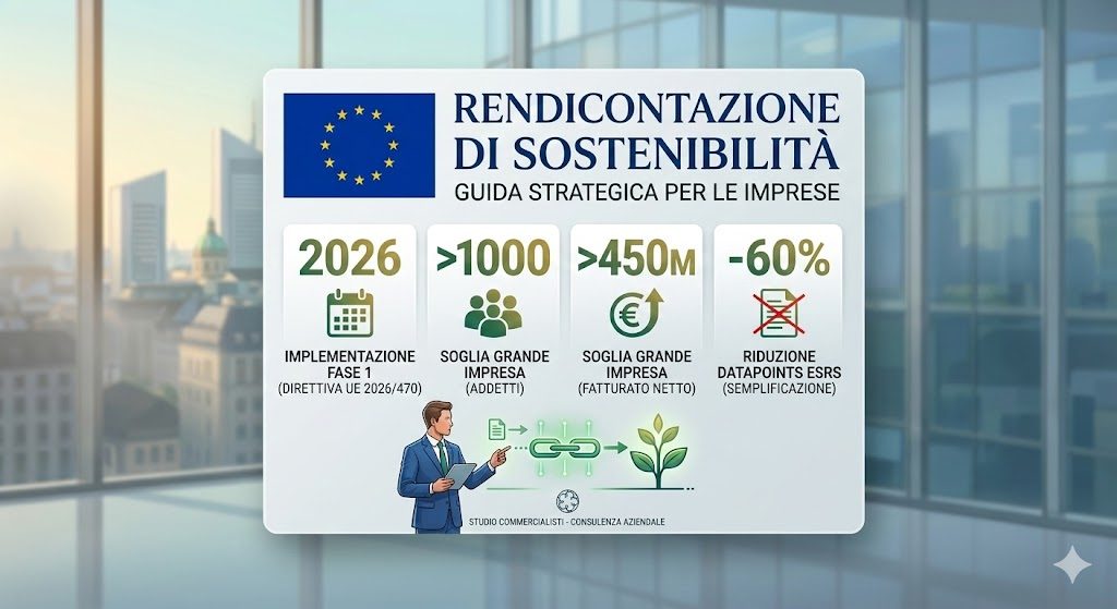 Tuttavia, per i professionisti dell’area contabile, è fondamentale non cadere nell’errore di considerare questo restringimento come un “liberi tutti”. Il mercato, rappresentato da istituti di credito e grandi capofila di filiera, continua a richiedere dati ESG (Environmental, Social, Governance) strutturati anche alle PMI non soggette all’obbligo diretto. In questo senso, la Direttiva 2026/470 non cancella l’urgenza della transizione, ma sposta il focus verso una rendicontazione più proporzionata e meno frammentata.